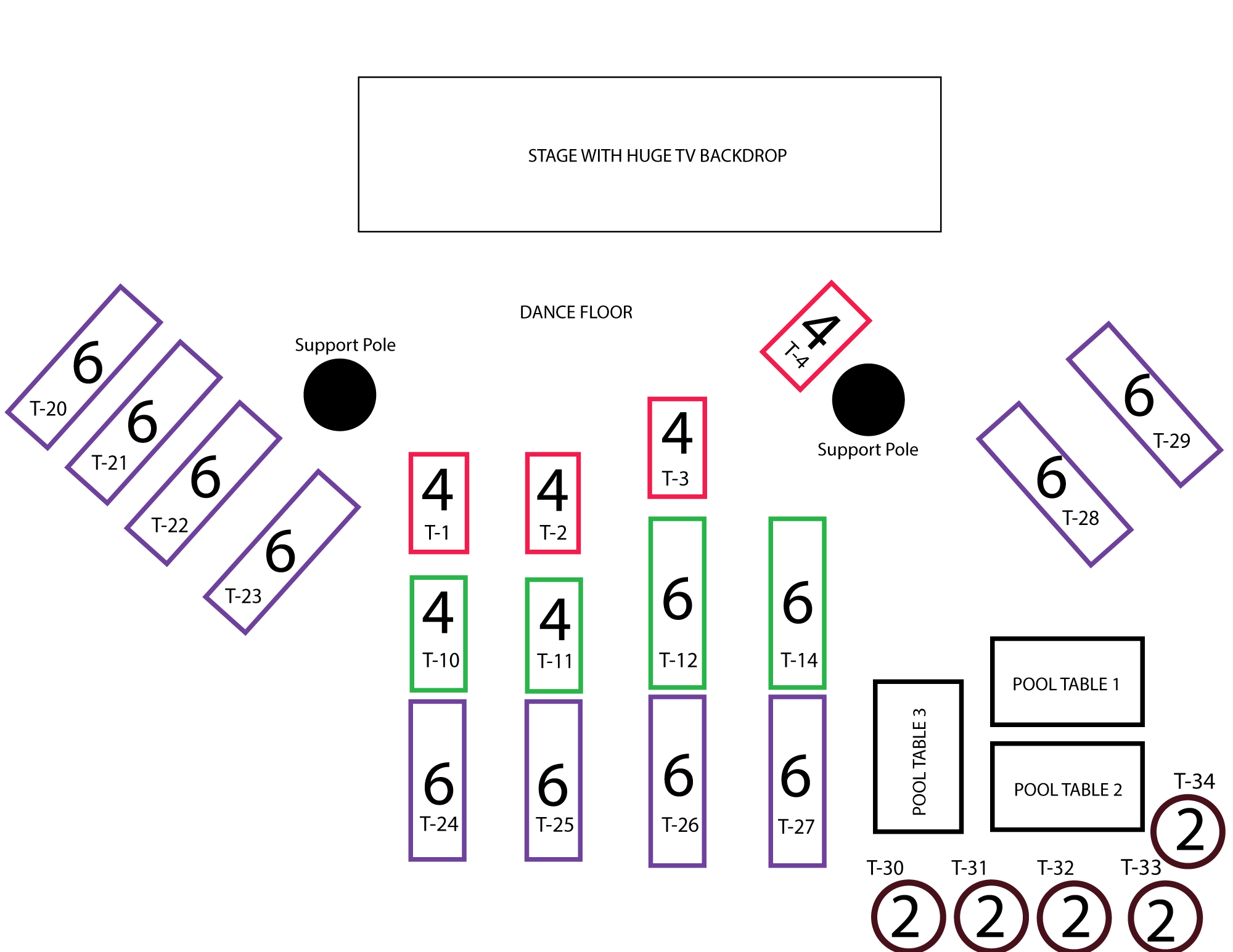 Here is a map of how the Video Wall Room seating is situated.